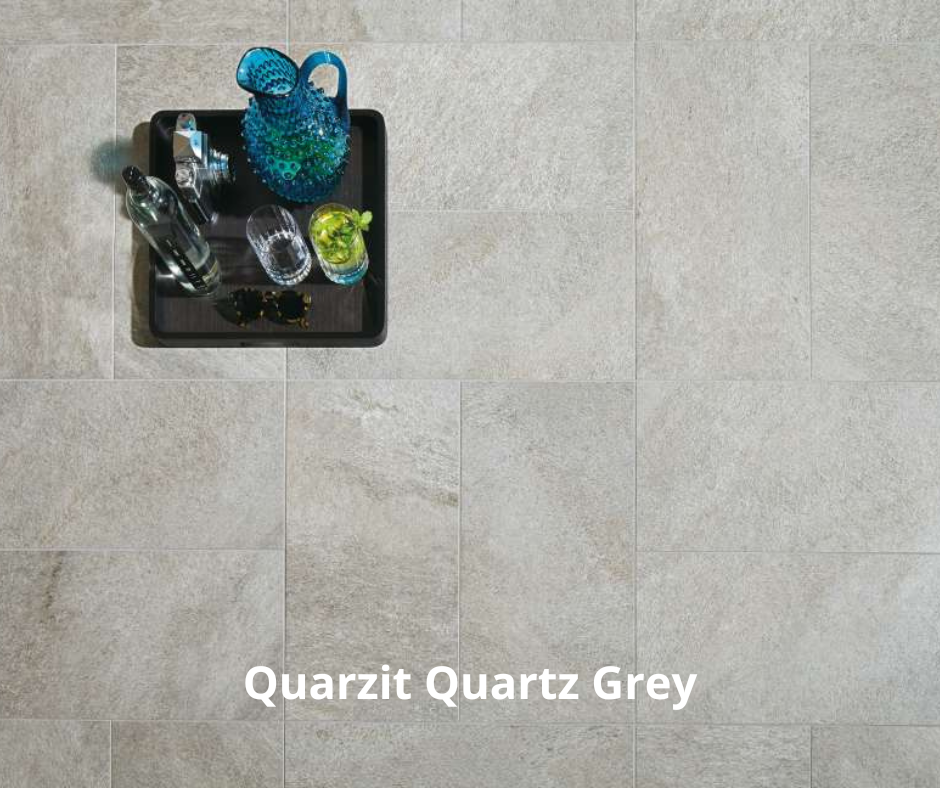 Quarzit serien har et naturligt udseende pga. dens glasurproces. Glasuren beriges med granulat inden påføring og danner en permanent forbindelse med flisen under brændingen. Dette resulterer i en livlig overflade med subtil glans. Dette resultere i den fantastiske egenskab af høj skridsikkerhed og omfattende modstandsdygtighed over for slid.